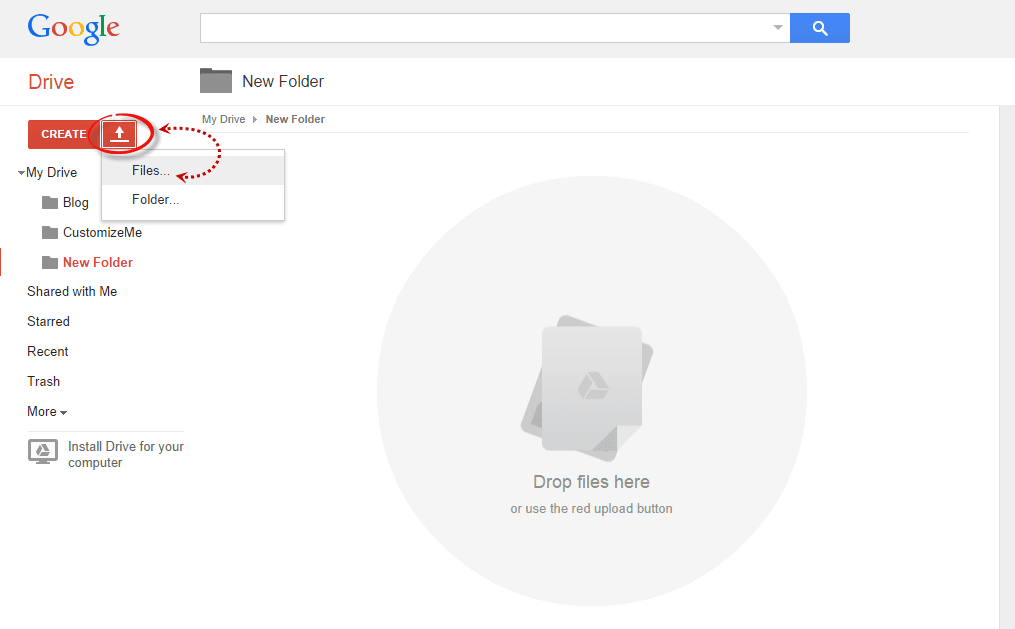 - Access https://drive.google.com and log in with your Gmail account. After you logged in, click on the 'Create' button and add a new separate folder to upload your JavaScript and CSS files.